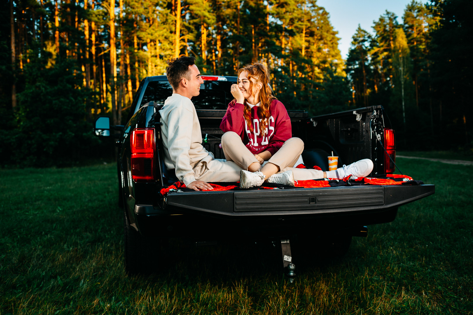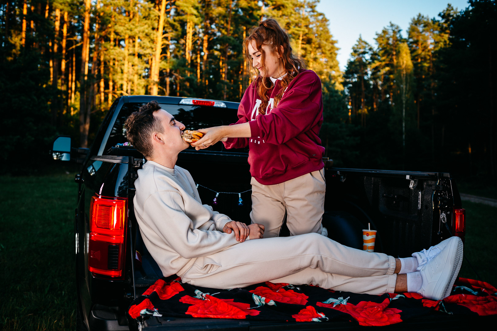 Zachodzące słońce, miłość, dużo śmiechu i pick-up to doskonały przepis na "love story"👩❤️👨 A na zdjęciach bardzo fajna para 😎